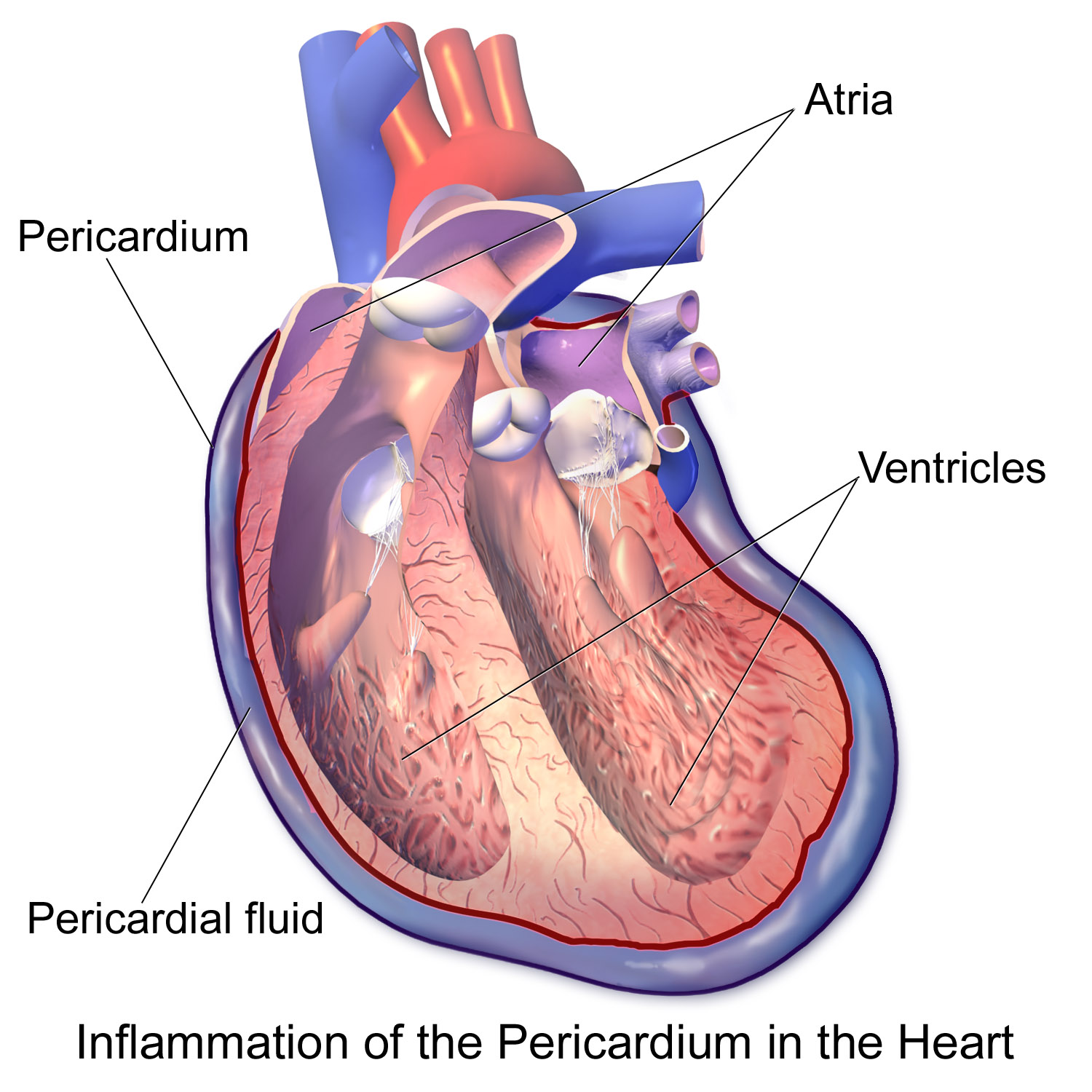 Pericarditis is a inflammation and swelling of the two-layer membrane called pericardium which is surrounding the heart. It can be caused by a viral infection or following a heart attack.
